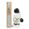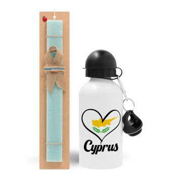 Cyprus flag, Easter Set, metallic aluminum water bottle (500ml) & scented flat candle (30cm) (TURQUOISE)