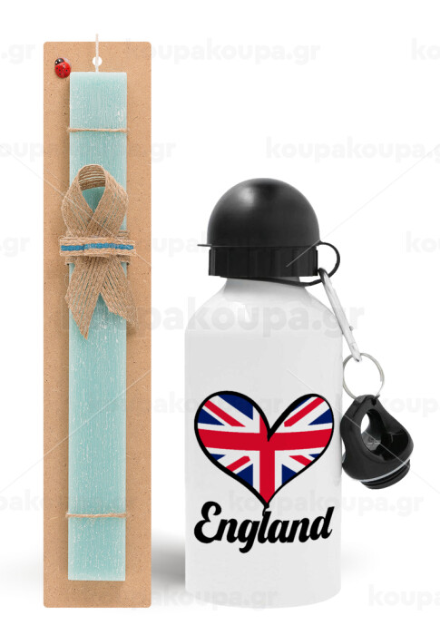 England flag, Easter Set, metallic aluminum water bottle (500ml) & scented flat candle (30cm) (TURQUOISE)