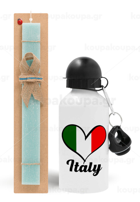 Italy flag, Easter Set, metallic aluminum water bottle (500ml) & scented flat candle (30cm) (TURQUOISE)