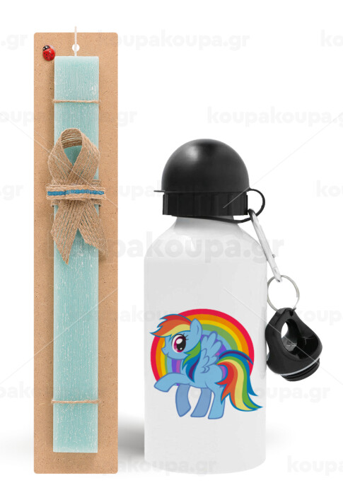My Little Pony, Easter Set, metallic aluminum water bottle (500ml) & scented flat candle (30cm) (TURQUOISE)