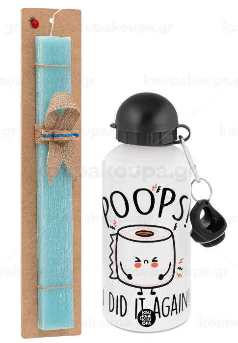 Poops!...I Did It Again, Easter Set, metallic aluminum water bottle (500ml) & scented flat candle (30cm) (TURQUOISE)