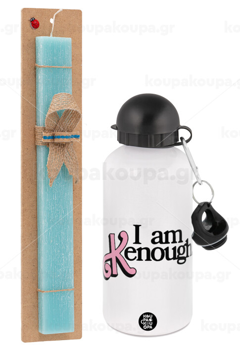 Barbie, i am Kenough, Easter Set, metallic aluminum water bottle (500ml) & scented flat candle (30cm) (TURQUOISE)