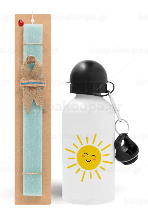 Happy sun, Easter Set, metallic aluminum water bottle (500ml) & scented flat candle (30cm) (TURQUOISE)