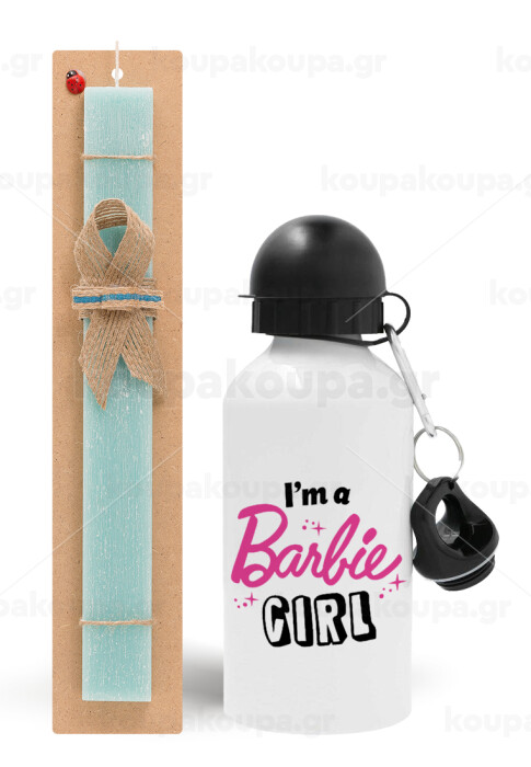 I'm Barbie girl, Easter Set, metallic aluminum water bottle (500ml) & scented flat candle (30cm) (TURQUOISE)
