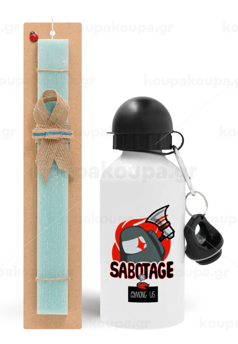 Among US Sabotage, Easter Set, metallic aluminum water bottle (500ml) & scented flat candle (30cm) (TURQUOISE)