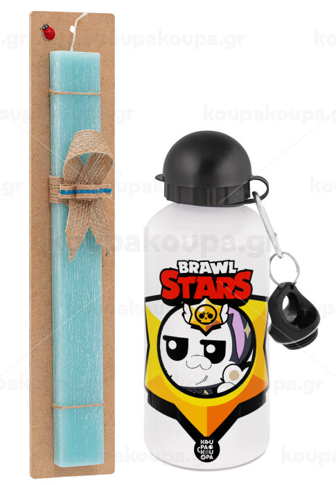 Brawl Stars Kit, Easter Set, metallic aluminum water bottle (500ml) & scented flat candle (30cm) (TURQUOISE)
