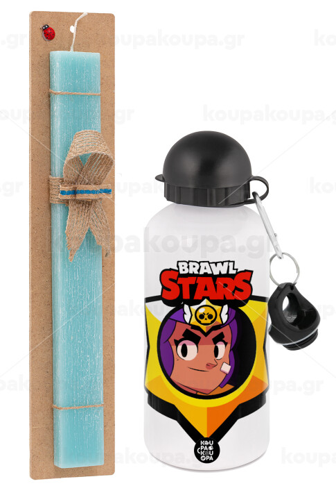 Brawl Stars Shelly, Easter Set, metallic aluminum water bottle (500ml) & scented flat candle (30cm) (TURQUOISE)