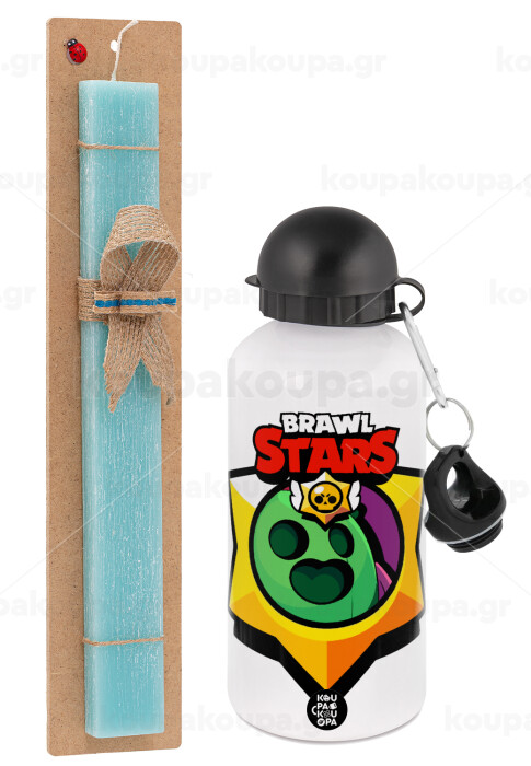 Brawl Stars Spike, Easter Set, metallic aluminum water bottle (500ml) & scented flat candle (30cm) (TURQUOISE)