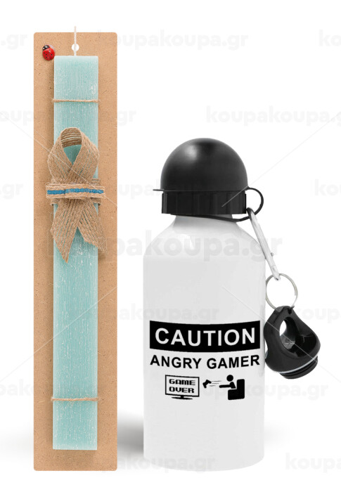 Caution, angry gamer!, Easter Set, metallic aluminum water bottle (500ml) & scented flat candle (30cm) (TURQUOISE)