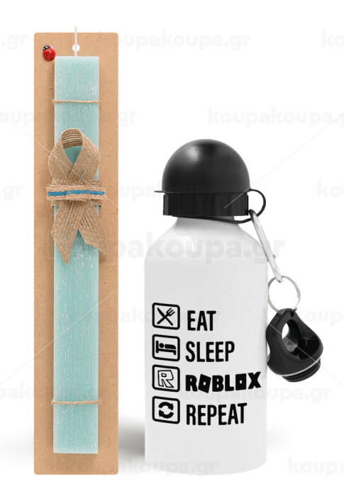 Eat, Sleep, Roblox, Repeat, Easter Set, metallic aluminum water bottle (500ml) & scented flat candle (30cm) (TURQUOISE)