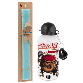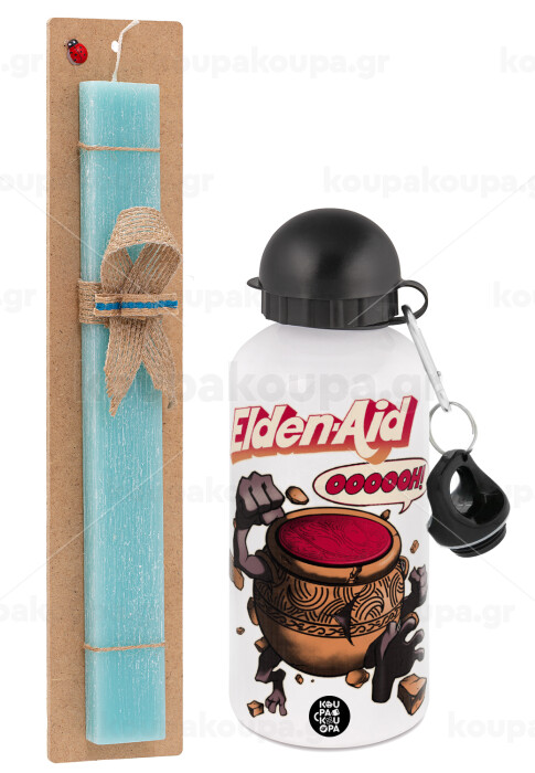Elden-Aid, Elden Ring inspired , Easter Set, metallic aluminum water bottle (500ml) & scented flat candle (30cm) (TURQUOISE)