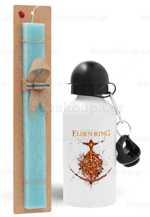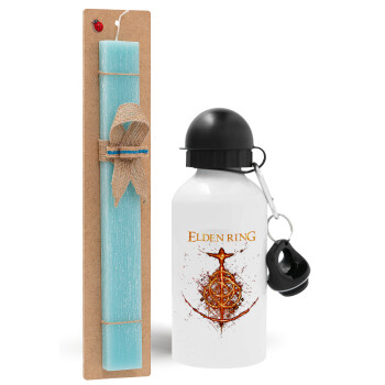 Elden Ring, Easter Set, metallic aluminum water bottle (500ml) & scented flat candle (30cm) (TURQUOISE)
