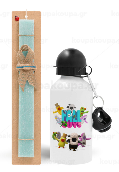 FALL GUYS, Easter Set, metallic aluminum water bottle (500ml) & scented flat candle (30cm) (TURQUOISE)