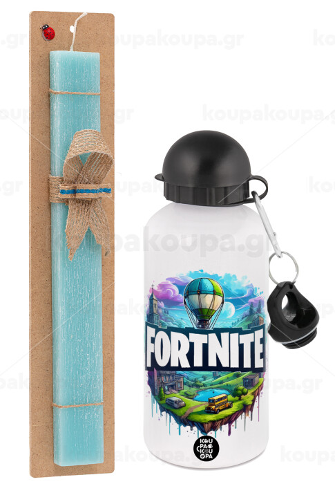 Fortnite land, Easter Set, metallic aluminum water bottle (500ml) & scented flat candle (30cm) (TURQUOISE)
