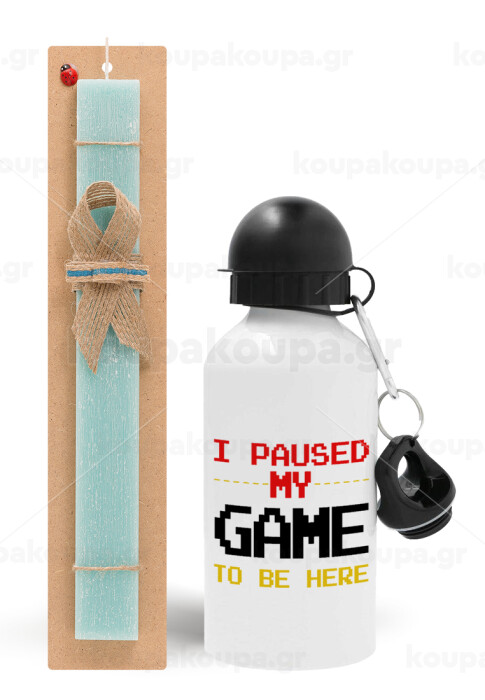 I paused my game to be here, Easter Set, metallic aluminum water bottle (500ml) & scented flat candle (30cm) (TURQUOISE)