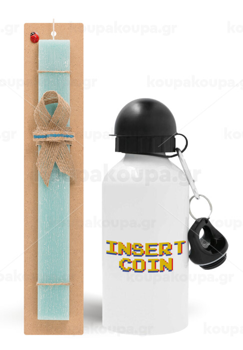 Insert coin!!!, Easter Set, metallic aluminum water bottle (500ml) & scented flat candle (30cm) (TURQUOISE)