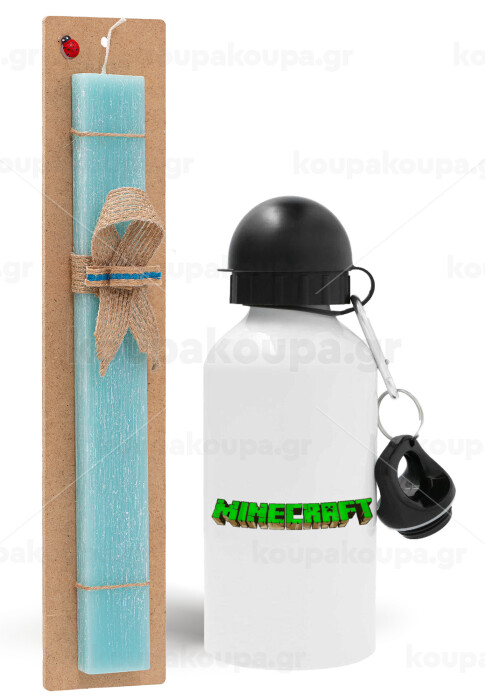 Minecraft logo green, Easter Set, metallic aluminum water bottle (500ml) & scented flat candle (30cm) (TURQUOISE)