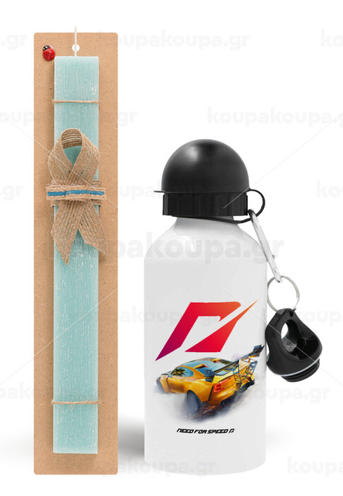 Need For Speed, Easter Set, metallic aluminum water bottle (500ml) & scented flat candle (30cm) (TURQUOISE)