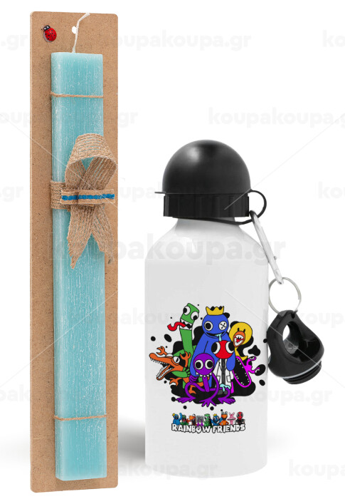 Rainbow friends, Easter Set, metallic aluminum water bottle (500ml) & scented flat candle (30cm) (TURQUOISE)