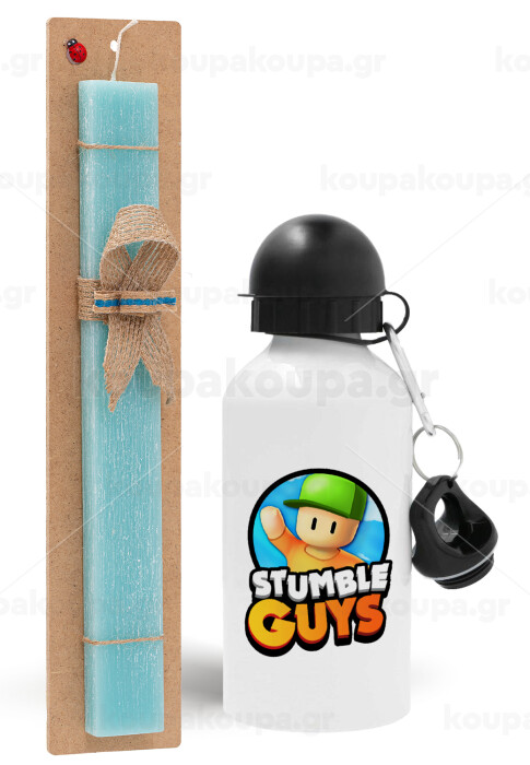 Stumble Guys, Easter Set, metallic aluminum water bottle (500ml) & scented flat candle (30cm) (TURQUOISE)