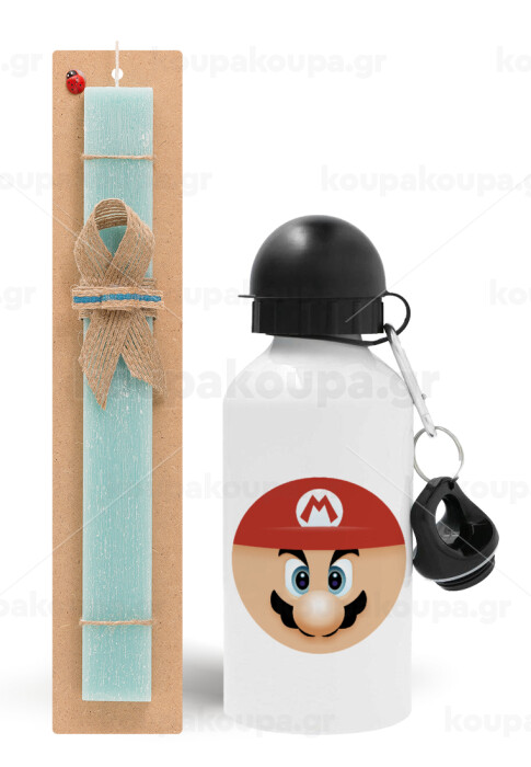 Super mario flat, Easter Set, metallic aluminum water bottle (500ml) & scented flat candle (30cm) (TURQUOISE)