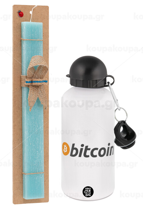 Bitcoin Crypto, Easter Set, metallic aluminum water bottle (500ml) & scented flat candle (30cm) (TURQUOISE)