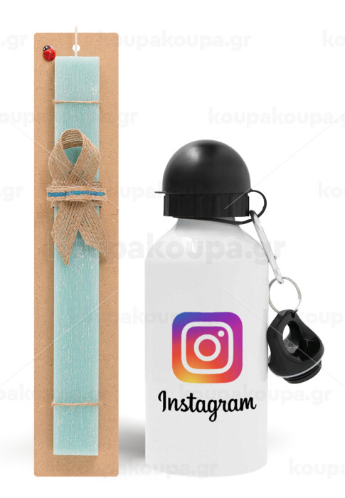 Instagram, Easter Set, metallic aluminum water bottle (500ml) & scented flat candle (30cm) (TURQUOISE)