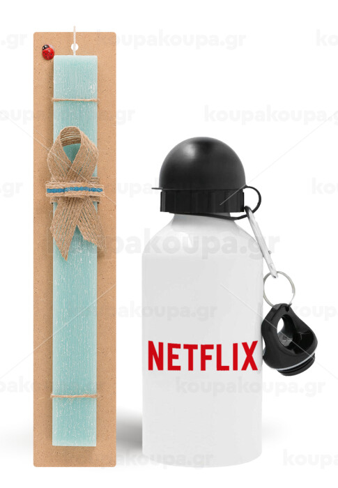 Netflix, Easter Set, metallic aluminum water bottle (500ml) & scented flat candle (30cm) (TURQUOISE)