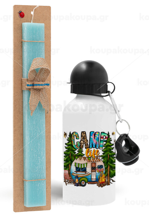 Camp Life, Easter Set, metallic aluminum water bottle (500ml) & scented flat candle (30cm) (TURQUOISE)