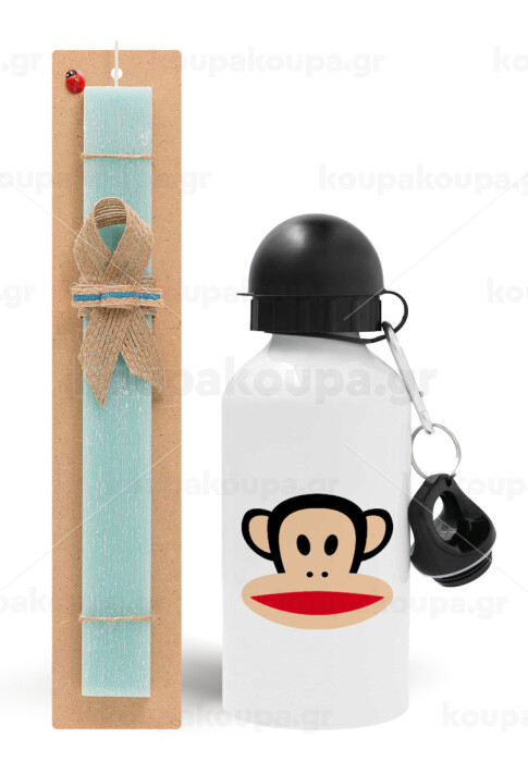 Monkey, Easter Set, metallic aluminum water bottle (500ml) & scented flat candle (30cm) (TURQUOISE)