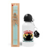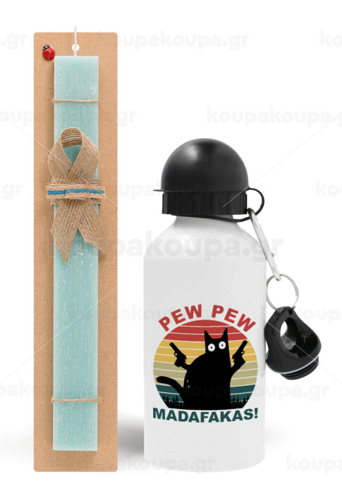 PEW PEW madafakas, Easter Set, metallic aluminum water bottle (500ml) & scented flat candle (30cm) (TURQUOISE)