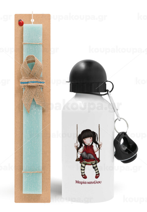 Santoro, Easter Set, metallic aluminum water bottle (500ml) & scented flat candle (30cm) (TURQUOISE)