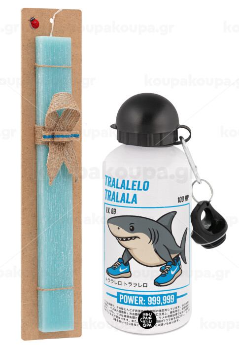 Tralalero Tralala, Easter Set, metallic aluminum water bottle (500ml) & scented flat candle (30cm) (TURQUOISE)