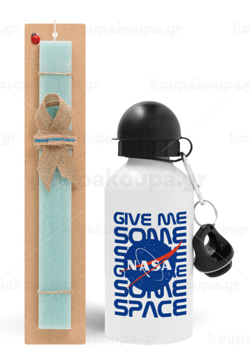 NASA give me some space, Easter Set, metallic aluminum water bottle (500ml) & scented flat candle (30cm) (TURQUOISE)