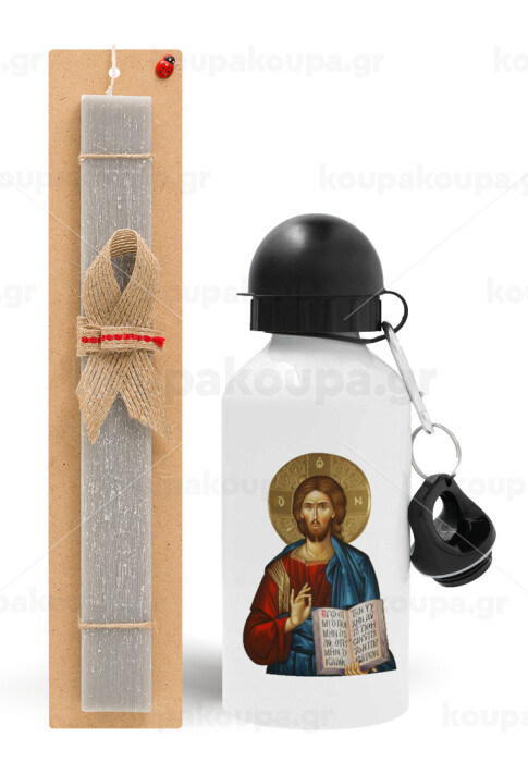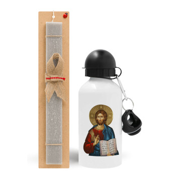 Jesus, Easter Set, metallic aluminum water bottle (500ml) & aromatic flat Easter candle (30cm) (GRAY)