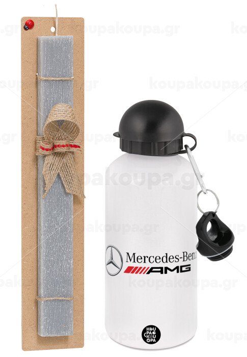 AMG Mercedes, Easter Set, metallic aluminum water bottle (500ml) & aromatic flat Easter candle (30cm) (GRAY)