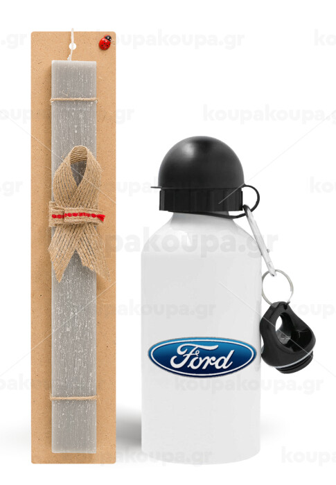 Ford, Easter Set, metallic aluminum water bottle (500ml) & aromatic flat Easter candle (30cm) (GRAY)
