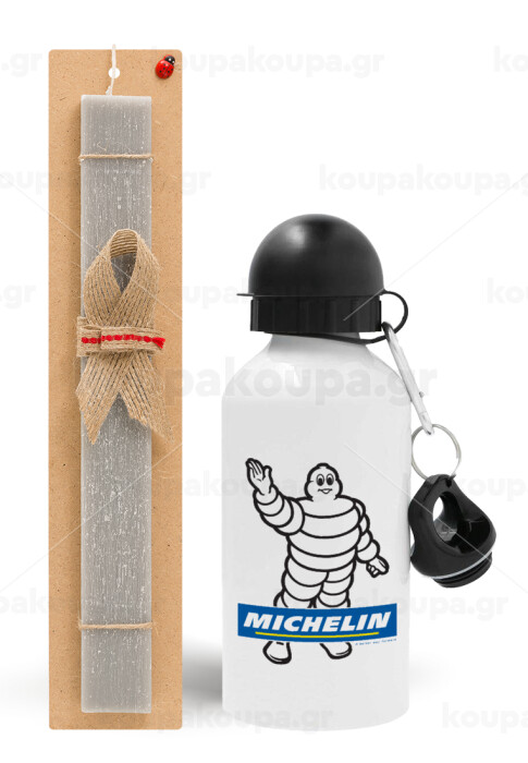 Michelin, Easter Set, metallic aluminum water bottle (500ml) & aromatic flat Easter candle (30cm) (GRAY)