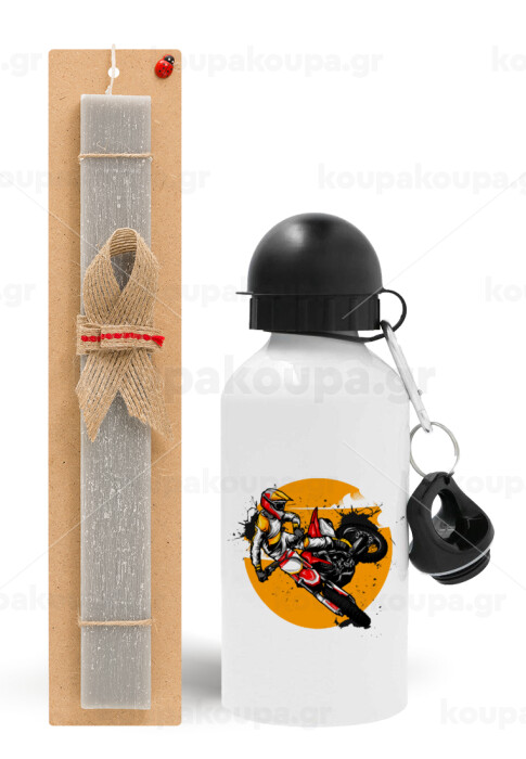 Motocross, Easter Set, metallic aluminum water bottle (500ml) & aromatic flat Easter candle (30cm) (GRAY)