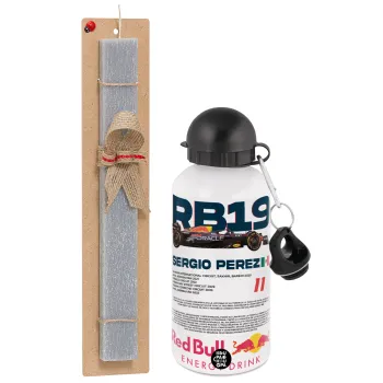 Redbull Sergio Perezi, Easter Set, metallic aluminum water bottle (500ml) & aromatic flat Easter candle (30cm) (GRAY)