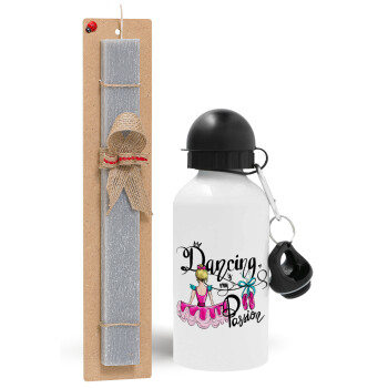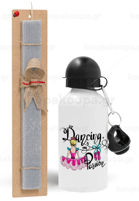 Dancing is my Passion, Easter Set, metallic aluminum water bottle (500ml) & aromatic flat Easter candle (30cm) (GRAY)