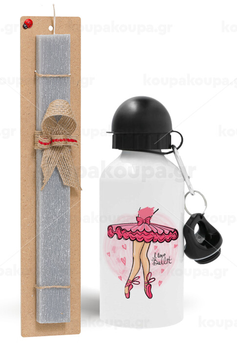 I Love Ballet, Easter Set, metallic aluminum water bottle (500ml) & aromatic flat Easter candle (30cm) (GRAY)