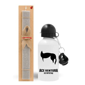 Ace Ventura Pet Detective, Easter Set, metallic aluminum water bottle (500ml) & aromatic flat Easter candle (30cm) (GRAY)