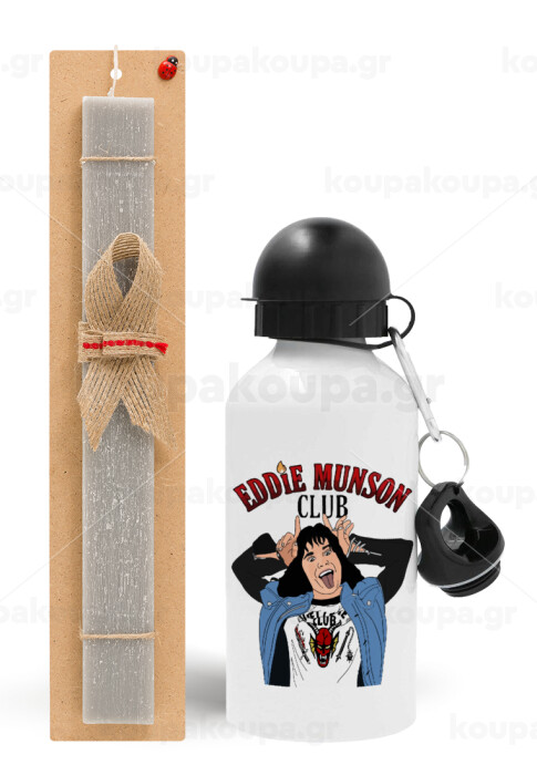 Eddie Munson, Easter Set, metallic aluminum water bottle (500ml) & aromatic flat Easter candle (30cm) (GRAY)