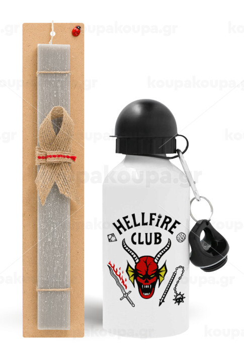 Hellfire CLub, Stranger Things, Easter Set, metallic aluminum water bottle (500ml) & aromatic flat Easter candle (30cm) (GRAY)