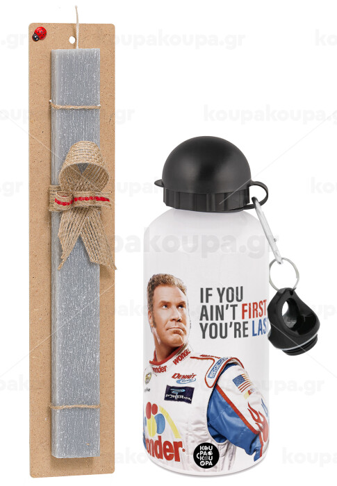 If You Ain't First You're Last Ricky Bobby, Talladega Nights, Easter Set, metallic aluminum water bottle (500ml) & aromatic flat Easter candle (30cm) (GRAY)