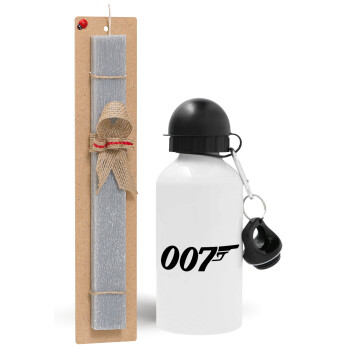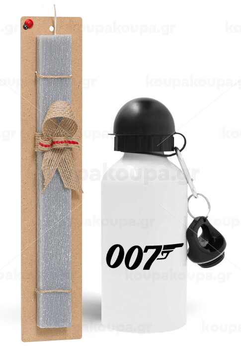 James Bond 007, Easter Set, metallic aluminum water bottle (500ml) & aromatic flat Easter candle (30cm) (GRAY)