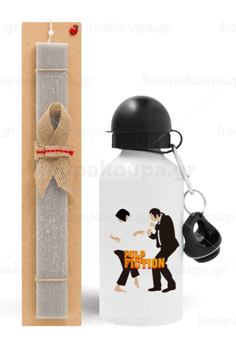 Pulp Fiction dancing, Easter Set, metallic aluminum water bottle (500ml) & aromatic flat Easter candle (30cm) (GRAY)