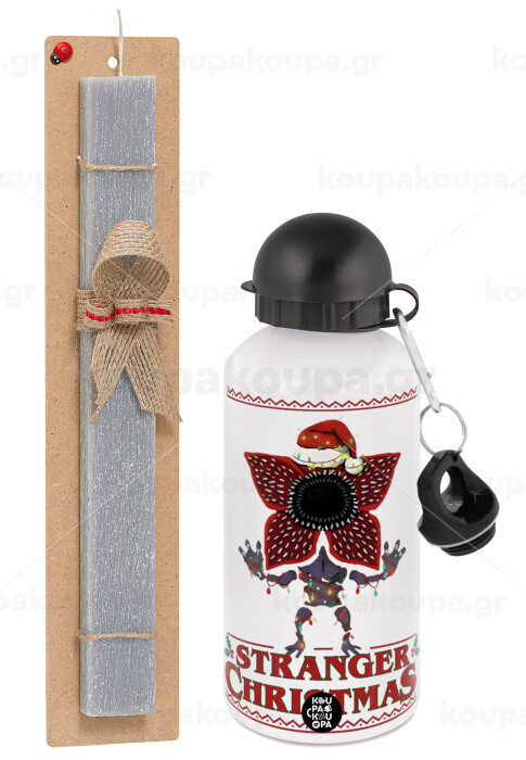 Stranger Things Christmas, Easter Set, metallic aluminum water bottle (500ml) & aromatic flat Easter candle (30cm) (GRAY)