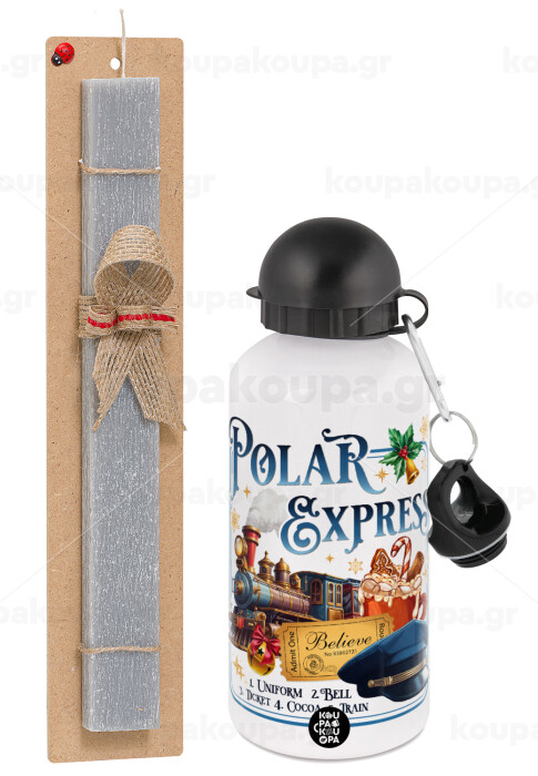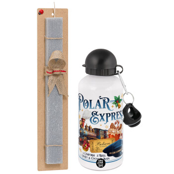 The Polar Express, Easter Set, metallic aluminum water bottle (500ml) & aromatic flat Easter candle (30cm) (GRAY)